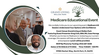 We invite you to our FREE Medicare Information Session designed to help seniors and their families understand Medicare options with confidence. Lunch will be provided.